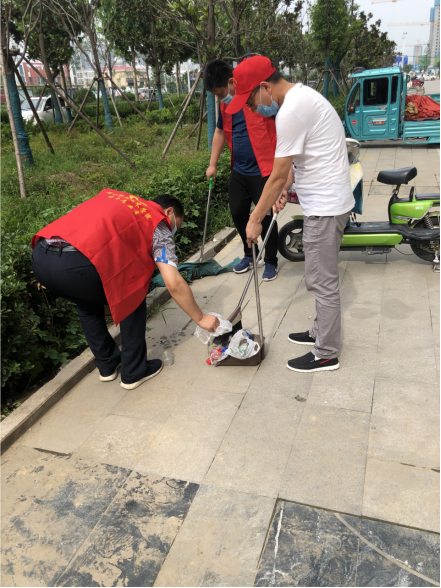 志愿者们按时到达许寨社区,两部门在社区门前设立了值班岗和卫生流动巡查小组。志愿者们各司其职,在许寨社区周边打扫卫生,清扫垃圾死角,清理社区内建筑垃圾,铲除小广告,向周边商户宣传创建卫生城市的精神、向社区发放问卷档案普及创卫工作要求和卫生常识。