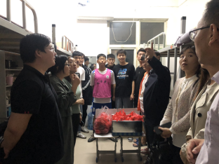 国庆国庆普天同庆,中秋中秋家家团圆。9月30日晚,值此双节到来之际,农牧工程学院党总支书记李民、农牧工程学院院长李嘉带领农牧工程学院全体班子成员及辅导员,在学生会主席的陪同下集体走访学生宿舍,为学院双节留校的学生送去了中秋月饼和水果。