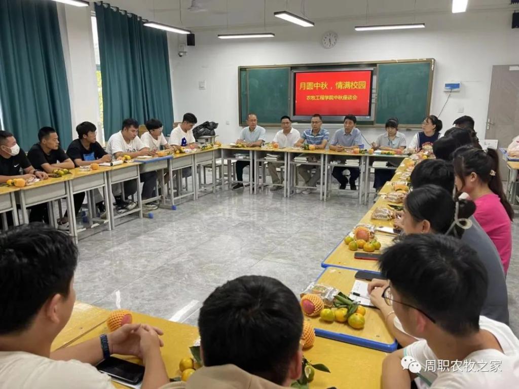 今年9月10日,恰逢中秋节和教师节双节合璧。花好月圆喜相逢,培根铸魂育新人,为了让同学们感受到校园的温暖和老师的关怀,农牧工程学院在6315教室举办了‘“月圆中秋,情满校园”为主题的师生座谈会。农牧工程学院党总支王安、副院长王伟、朱平军,教学办主任薛文君、学管办主任米文静、21级专职辅导员韩伟和30多名学生代表参加本次活动。