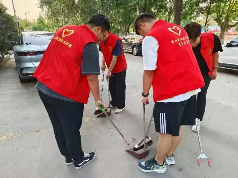 活动中,志愿者们携带清扫工具,对校园道路进行清扫,确保了道路干净整洁,无垃圾、杂物。同时还组织志愿者对绿化植被进行养护工作,促进植被健康生长,提高校园绿化水平。除此之外,学院负责人也引导志愿者携带清洁工具,对校园内的小广告进行清理,恢复墙面、宣传栏等公共设施的美观。
