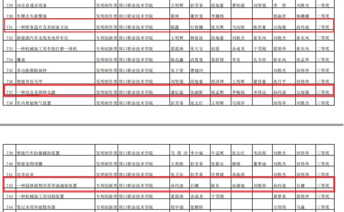 大学生专利创新大赛中,取得一个二等奖,两个三等奖的优异成绩。这个农牧工程学院第三次在该项比赛中取得奖项,也是获得奖项最多的一次。